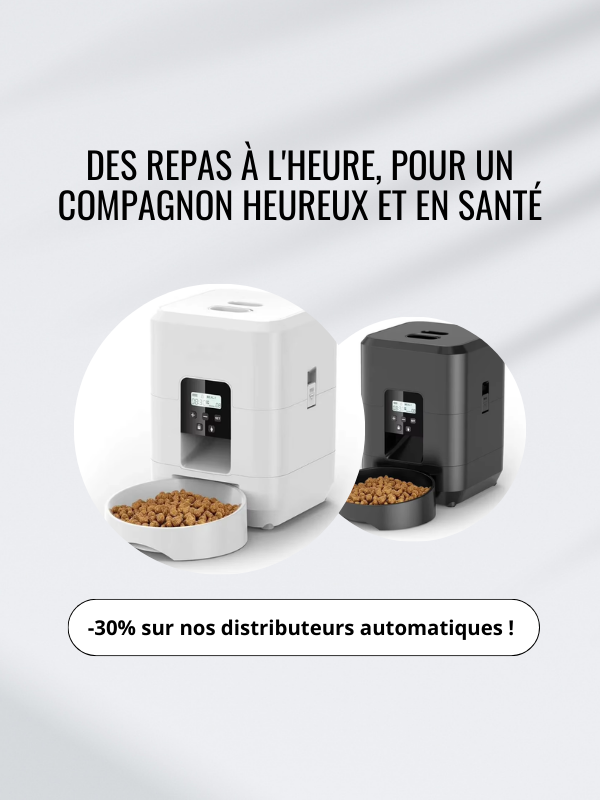 Donner à votre animal des repas réguliers et en quantités contrôlées est essentiel pour sa santé. Avec un distributeur intelligent, fini les excès ou les oublis ! Vous contribuez à maintenir son poids idéal, à améliorer sa digestion, et à lui offrir une meilleure qualité de vie sur le long terme. Un petit geste pour vous, un grand bienfait pour lui !